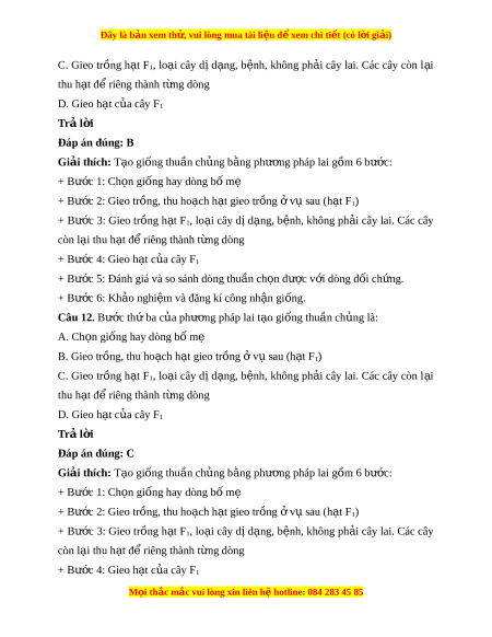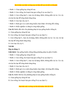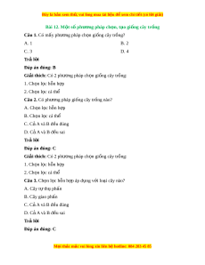 ệ và đăng kí công nh n gi ậ ng. ố Câu 11. Bư c t ớ h hai ứ c a ủ phư ng pháp ơ lai t o gi ạ ng t ố hu n ch ầ ng ủ là: A. Ch n gi ọ ống hay dòng bố mẹ B. Gieo tr ng, t ồ hu ho ch ạ h t ạ gieo tr ng ồ v ở s ụ au (h t ạ F1) M i