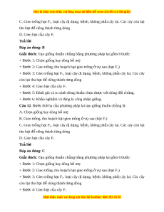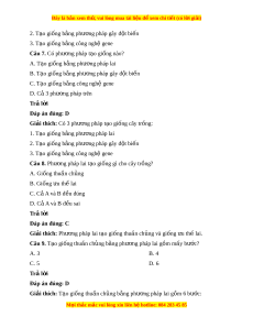 Giải thích: Phư ng pháp l ơ ai t o ạ gi ng t ố hu n ch ầ ng và gi ủ ng ố u t ư h l ế ai. Câu 9. T o gi ạ ống thuần ch ng b ủ ng ph ằ ư ng ơ pháp lai g m ồ m y b ấ ư c? ớ A. 3 B. 4 C. 5 D. 6 Trả l i ờ Đáp án đúng: D Giải thích: T o gi ạ ống thuần ch ng b ủ ng ằ phư ng pháp l ơ ai g m ồ 6 bư c: ớ M i