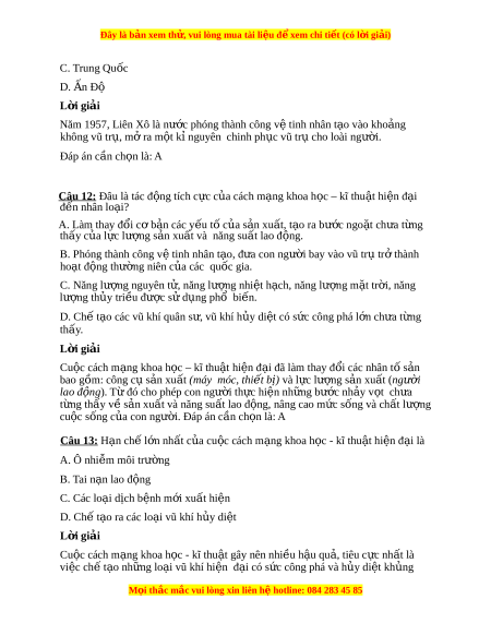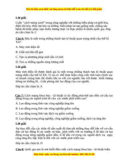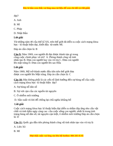 Đây là bản xem th , vu ử i lòng mua tài li u ệ đ xe ể m chi ti t (c ế ó l i ờ gi i ả ) đ i ạ ? A. Anh B. Mĩ C. Pháp D. Nh t ậ B n ả L i ờ giải T nh ừ ng năm ữ 40 c a ủ th k ế X ỉ X, trên th gi ế i ớ đã di n r ễ a cu c cách ộ m ng khoa ạ h c ọ - kĩ thu t ậ hi n đ ệ i ạ , kh i ở đ u t ầ n ừ ư c M ớ ĩ. Đáp án c n ch ầ n l ọ à: B