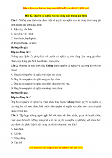Câu 1. Những quy định của pháp luật về quyền và nghĩa vụ của công dân trong gia