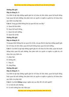 Câu 4. Trong gia đình không tồn tại quan hệ nào sau đây? A. Quan hệ hôn nhân. B. Quan hệ huyết thống. C. Quan hệ nuôi dưỡng. D. Quan hệ xã hội. Hướng dẫn giải Đáp án đúng là: D