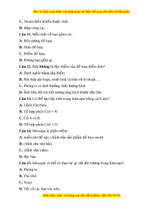 Câu 14. Inkscape là ph n m ầ m ề : A. mi n phí ễ đ t ể o, ạ ch nh s ỉ a ử s n ả ph m ẩ đ h ồ a vect ọ . ơ B. chỉnh s a ử văn b n. ả C. chỉnh sửa video. D. đ c ộ h i ạ .