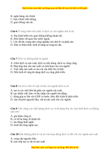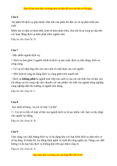 Câu 5 Các ngành nông nghiệp, công nghiệp được cung cấp nguyên liệu, vật tư sản xuất là nhờ A. dịch vụ cộng đồng.