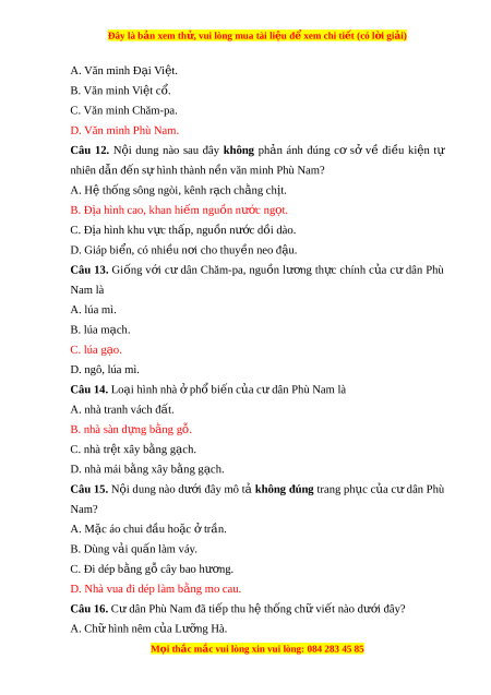 Đây là bản xem th , vu ử i lòng mua tài li u ệ đ xe ể m chi ti t ế (có l i ờ gi i ả ) A. Văn minh Đ i ạ Vi t ệ . B. Văn minh Vi t ệ cổ. C. Văn minh Chăm-pa. D. Văn minh Phù Nam. Câu 12. N i