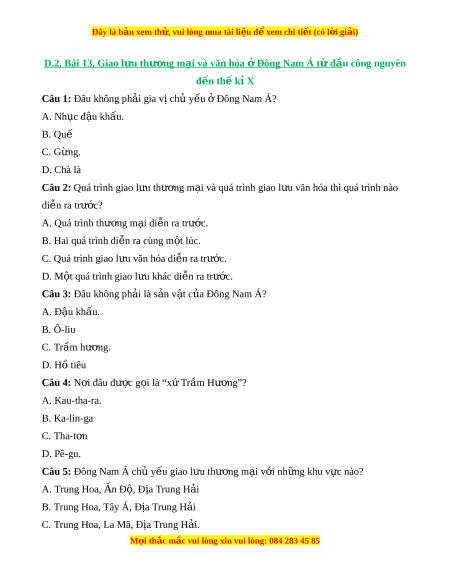 Đây là bản xem th , vu ử i lòng mua tài li u ệ đ xe ể m chi ti t (c ế ó l i ờ gi i ả ) D .2. B ài 13. Giao l u t ư hư ng m ơ i ạ và văn hóa Đ ở ông Nam Á t đ ừ ầ u công nguyên đ n t ế h k ế X ỉ