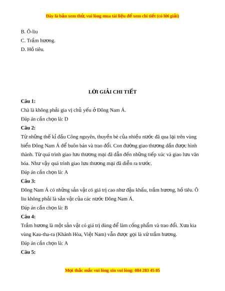 Đây là bản xem th , vu ử i lòng mua tài li u ệ đ xe ể m chi ti t (c ế ó l i ờ gi i ả ) D. Hy L p, ạ n Đ Ấ , ộ Đ a ị Trung H i ả Câu 6: Nh ng đ ữ c ặ đi m ể sau đây là đ c t ặ r ng c ư a đ ủ t ấ nư c ớ nào? “Đất nư c s ớ n s ả inh đ i ồ m i ồ , vàng b c, ạ s ng