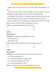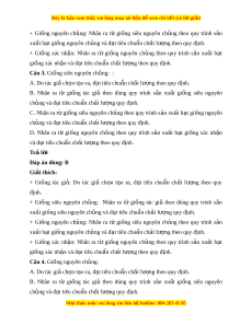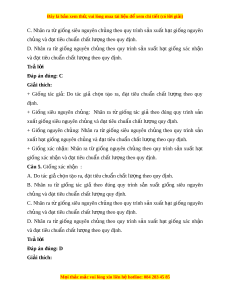 ạ tiêu chuẩn chất lư ng t ợ heo quy đ nh. ị Trả l i ờ Đáp án đúng: C Giải thích: + Gi ng ố tác gi : ả Do tác giả ch n ọ t o ạ ra, đ t ạ tiêu chu n ẩ ch t ấ lư ng ợ theo quy định. + Giống siêu nguyên ch ng: ủ Nhân ra từ gi ng