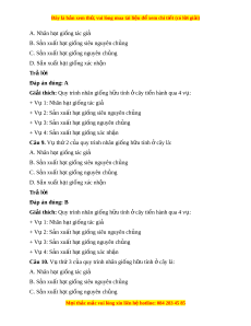 ạ tiêu chuẩn chất lư ng t ợ heo quy đ nh. ị Trả l i ờ Đáp án đúng: A Giải thích: + Gi ng ố tác gi : ả Do tác giả ch n ọ t o ạ ra, đ t ạ tiêu chu n ẩ ch t ấ lư ng ợ theo quy định. + Giống siêu nguyên ch ng: ủ Nhân ra từ gi ng