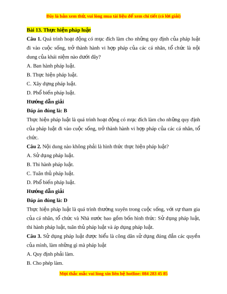 Đây là bản xem th , vu ử i lòng mua tài li u ệ đ xe ể m chi ti t (c ế ó l i ờ gi i ả ) Bài 13. Thực hi n p ệ háp lu t ậ