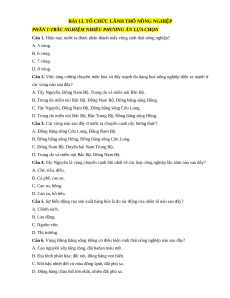 Câu 21. Hình thức tổ chức lãnh thổ nông nghiệp cao nhất là A. vùng nông nghiệp. B. trang trại. C. vùng chuyên canh. D. hộ gia đình.