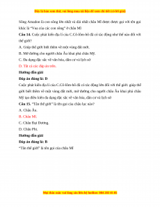 Câu 13. “Vua của các con sông” ở châu Mĩ là sông nào?