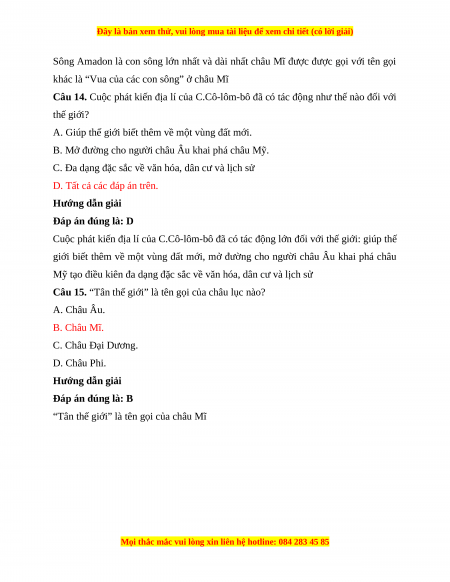 Câu 14. Cuộc phát kiến địa lí của C.Cô-lôm-bô đã có tác động như thế nào đối với