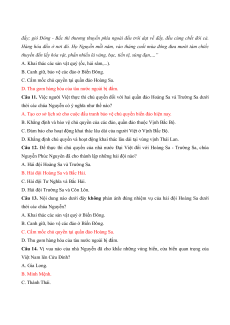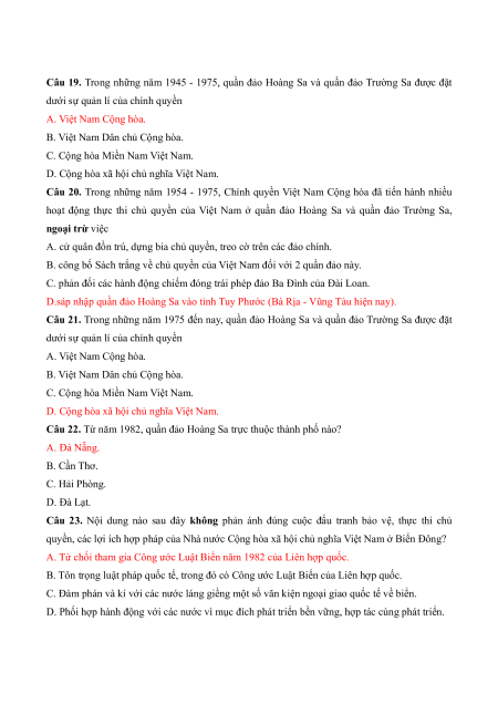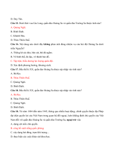 Câu 18. Đầu thế kỉ XX, quần đảo Hoàng Sa được sáp nhập vào tỉnh nào? A. Bà Rịa. B. Thừa Thiên Huế. C. Quảng Ngãi. D. Bình Định.