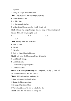 Câu 5. Chất thải trong ao ở dạng A. nước thải. B. chất thải rắn.
