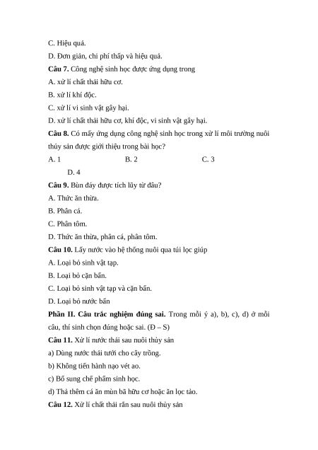 Câu 11. Xử lí nước thải sau nuôi thủy sản
