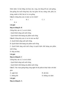 Câu 3. Giống thủy sản có mấy vai trò chính? A. 1 B. 2 C. 3 D. 4 Lời giải Đáp án đúng là: B