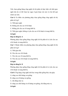 Câu 5. Việc chọn giống bằng công nghệ chỉ thị phân tử thực hiện với thời gian A. ngắn hơn B. dài hơn C. không đổi D. không xác định