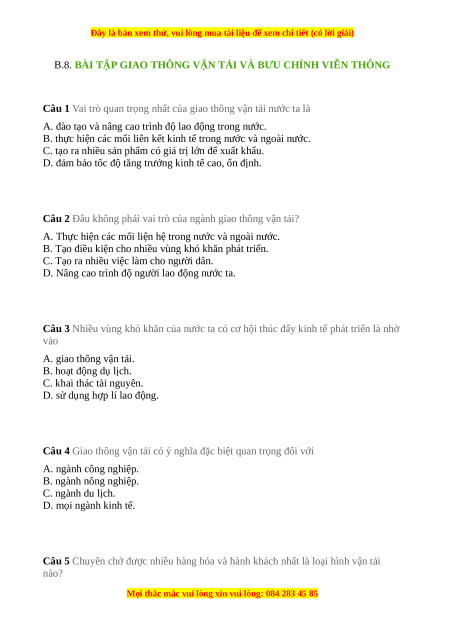 B.8. BÀI TẬP GIAO THÔNG VẬN TẢI VÀ BƯU CHÍNH VIỄN THÔNG