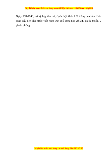 Câu 10. N c ta ban hành b n Hi n pháp đ u tiên năm nào?ướ ả ế ầ