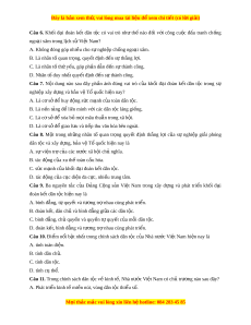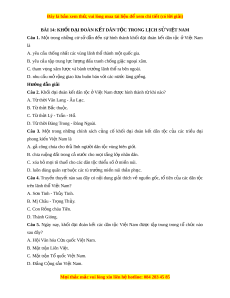 Câu 2. Khối đại đoàn kết dân t c ộ ở Vi t ệ Nam đư c ợ hình thành t khi ừ nào? A. T t ừ hời Văn Lang - Âu L c ạ . B. Từ th i ờ B c ắ thu c ộ . C. Từ th i ờ Lý - Trần - H . ồ D. T t