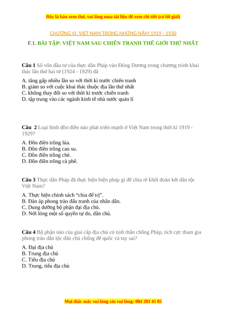 F.1. BÀI TẬP: VIỆT NAM SAU CHIẾN TRANH THẾ GIỚI THỨ NHẤT