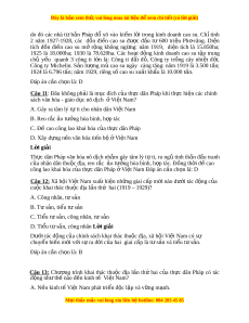 ậ rung vào các ngành kinh t nhà n ế ư c qu ớ n ả lí L i ờ giải T ng s ổ ố vốn mà th c ự dân Pháp đ u t ầ vào Đ ư ông Dư ng đ ơ t ể h c ự hi n ch ệ ư ng ơ trình khai thác l n t ầ h hai ứ lên đ n ế 400 tri u Ph ệ răng, tăng g p nhi ấ u l ề n s ầ o v i ớ th i ờ kì trư c ớ chi n t ế ranh. Đáp án c n ch ầ n l ọ à: A Câu 2: Lo i ạ hình đ n đi ồ n nào phát ề tri n m ể nh ạ ở Vi t ệ Nam trong th i ờ kì 1919 - 1929? A. Đồn đi n t ề rồng lúa. B. Đồn đi n t ề rồng cao su. C. Đồn đi n ề tr ng chè. ồ D. Đồn đi n t ề rồng cà phê. L i ờ giải Lo i ạ hình đ n ồ đi n ề phát tri n ể m nh ạ ở Vi t ệ Nam trong th i ờ kì 1919 – 1929 là đồn đi n ề tr ng ồ cao su. Vì sau chi n ế tranh thế gi i ớ thứ nh t ấ nhu c u ầ về cao su c a ủ thị trư ng ờ thế gi i ớ r t ấ l n,