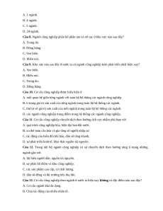 Câu 10. Cơ cấu công nghiệp được biểu hiện ở
