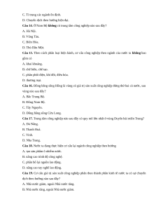 Câu 16. Đồng bằng sông Hồng là vùng có giá trị sản xuất công nghiệp đứng thứ hai cả nước, sau vùng nào sau đây? A. Bắc Trung Bộ. B. Đông Nam Bộ. C. Tây Nguyên.
