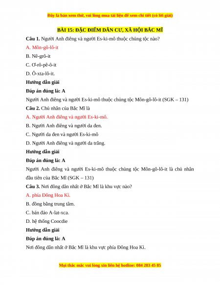 BÀI 15: ĐẶC ĐIỂM DÂN CƯ, XÃ HỘI BẮC MĨ