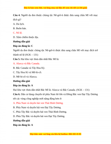 Câu 4. Người da đen thuộc chủng tộc Nê-grô-ít được đưa sang châu Mĩ với mục đích gì? A. Du lịch. B. Buôn bán. C. Nô lệ.