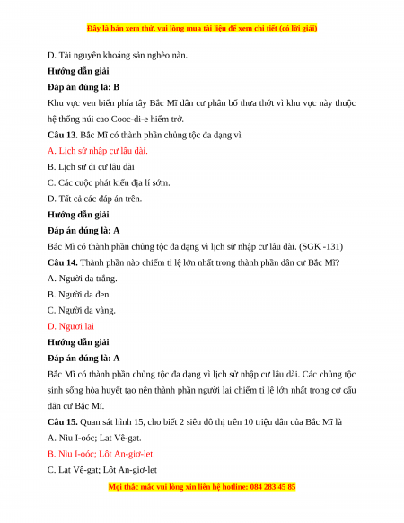 Câu 13. Bắc Mĩ có thành phần chủng tộc đa dạng vì