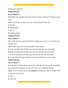 D. chất dinh dư ng, n ỡ ước và ánhh sáng. Hư ng d ớ ẫn gi i ả Đáp án đúng là: A Kho ng ả vài ch c ụ mét ở phía trên b ề m t ặ đ t ấ là có th c ự v t ậ sinh s ng, ố do có đ y ầ đủ các y u ế tố cho sự s ng ố sinh trư ng ở và phát tri n ể nh ư ánh sáng, khí, nư c ớ và chất dinh dư ng. ỡ Câu 2. Ki u ể th m ả th c ự v t ậ nào sau đây phân b ố ở n i ơ có ki u ể khí h u ậ c n ậ nhi t ệ gió mùa? A. R ng ừ nhi t ệ đ i ớ m ẩ . B. R ng l ừ á r ng và r ộ ng h ừ ỗn h p. ợ C. R ng ừ và cây b i ụ lá c ng c ứ n ậ nhi t ệ . D. R ng ừ c n ậ nhi t ệ m ẩ . Hư ng d ớ ẫn gi i ả Đáp án đúng là: D Ki u ể th m ả th c ự v t ậ phân bố ở n i ơ có ki u ể khí h u ậ c n ậ nhi t ệ gió mùa là r ng ừ c n ậ nhi t ệ m ẩ . Câu 3. Ki u ể th m ả th c ự v t