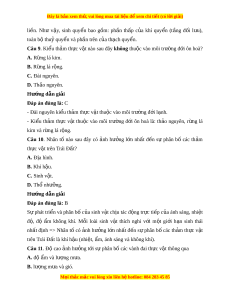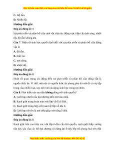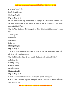 ề rong toàn bộ chi u dày c ề a s ủ inh quy n. ể Hư ng d ớ ẫn gi i ả Đáp án đúng là: C Sinh v t ậ phân bố không đ u ề trong toàn b ộ chi u ề dày c a ủ sinh quy n, ể mà thư ng ờ t p ậ trung nhi u ề ở kho ng vài ả ch c ụ mét phí ở a trên và dư i ớ b m ề t ặ đ t ấ . Câu 6. Y u ế tố khí h u