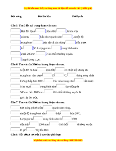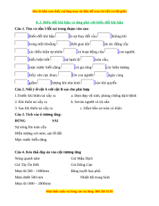 ỗ sai trong đo n văn s ạ au: Bi n đ ế ổi khí h u ậ là sự thay đổi c a ủ không khí trong m t ộ kho ng ả th i ờ gian dài do tác đ ng c ộ a ủ các đi u ki ề ện t nhi ự ên và ho t ạ đ ng ộ c a ủ con ngư i ờ , bi u hi ể ện b i ở sự l nh đi ạ toàn cầu, m c n ự ư c ớ bi n dâng ể và gia tăng các hi n t ệ ư ng ợ th y văn c ủ c ự đoan. Do con ngư i ờ ngày càng gi m ả lư ng khí ợ nhà kính vào khí quy n. ể Câu 2. N i ố ý c ở t ộ A v i ớ c t ộ B sao cho phù h p ợ
