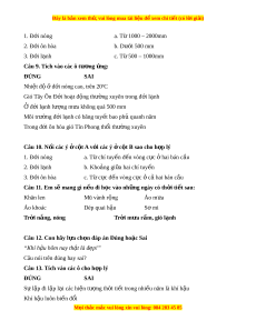 Câu 13. Tích vào các ô cho h p l ợ ý ĐÚNG SAI S l ự p ặ đi l p l ặ i ạ các hi n t ệ ư ng t ợ h i ờ ti t ế trong nhi u ề năm là khí h u ậ Khí h u ậ luôn bi n đ ế i ổ M i ọ thắc m c
