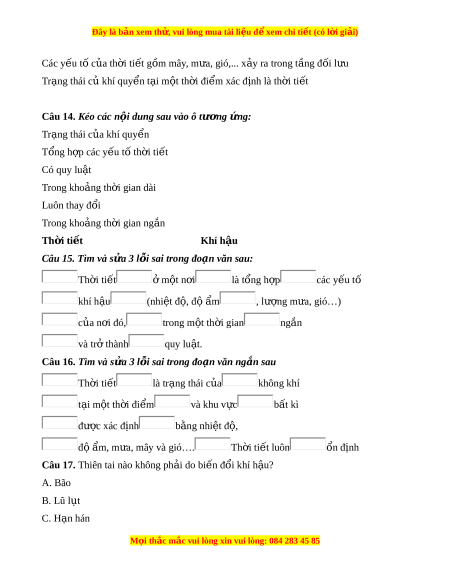 Đây là bản xem th , vu ử i lòng mua tài li u ệ đ xe ể m chi ti t (c ế ó l i ờ gi i ả ) Các y u t ế ố c a t ủ h i ờ ti t ế g m ồ mây, m a, gi ư ó,... x y ả ra trong t ng đ ầ i ố l u ư Tr ng t ạ hái c khí ủ quy n t ể i ạ m t ộ th i ờ đi m ể xác đ nh l ị à th i ờ ti t ế