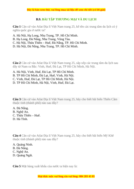 B.9. BÀI TẬP THƯƠNG MẠI VÀ DU LỊCH