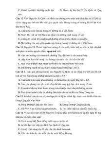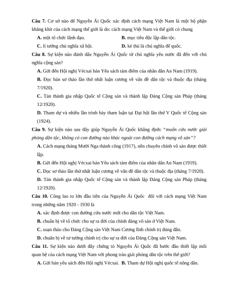 Câu 11. Sự kiện nào dưới đây chứng tỏ Nguyễn Ái Quốc đã bước đầu thiết lập mối