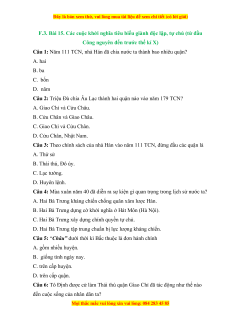 F.3. Bài 15. Các cuộc khởi nghĩa tiêu biểu giành độc lập, tự chủ (từ đầu