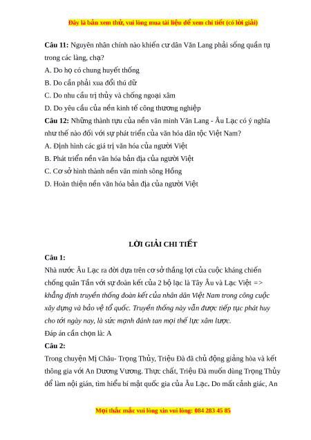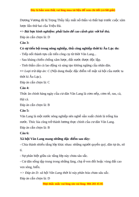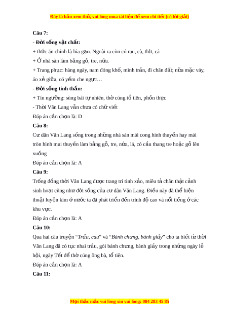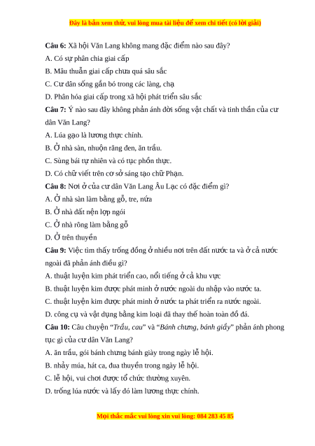 Đây là bản xem th , vu ử i lòng mua tài li u ệ đ xe ể m chi ti t ế (có l i ờ gi i ả ) Câu 6: Xã h i ộ Văn Lang không mang đ c ặ đi m ể nào sau đây?