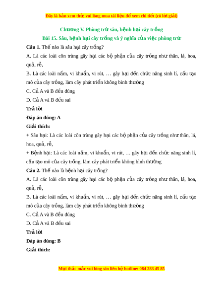 Đây là bản xem th , vu ử i lòng mua tài li u ệ đ xe ể m chi ti t (c ế ó l i ờ gi i ả ) Chư ng ơ V. Phòng tr s ừ âu, b nh h ệ i ạ cây tr ng ồ Bài 15. Sâu, b nh h ệ i ạ cây tr ng