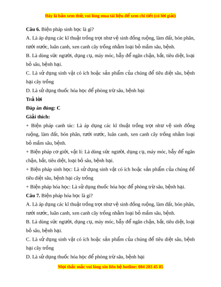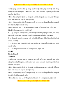 Câu 6. Biện pháp sinh h c l ọ à gì? A. Là áp d ng các ụ kĩ thu t ậ tr ng t ồ r t ọ nh v ư s ệ inh đ ng r ồ u ng, l ộ àm đ t ấ , bón phân, tư i ớ nư c, l ớ