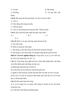 Câu 5. Có mấy phương pháp bảo quản lạnh tinh trùng? A. 1 B. 2 C. 3 D. 4