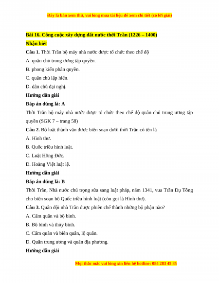 Câu 1.Thời Trần bộ máy nhà nước được tổ chức theo chế độ