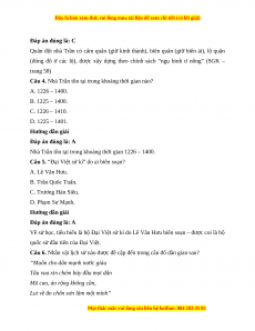 Câu 4. Nhà Trần tồn tại trong khoảng thời gian nào? A. 1226 – 1400. B. 1225 – 1400. C. 1226 – 1410. D. 1225 – 1401. Hướng dẫn giải Đáp án đúng là: A