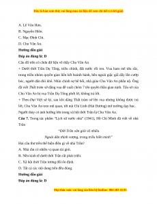 Câu 7. Trong tác phẩm “Lịch sử nước nhà” (1941), Hồ Chí Minh đã viết về nhà Trần