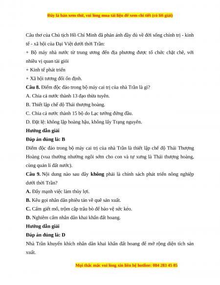 Câu 1. Thời Trần bộ máy nhà nước được tổ chức theo chế độ