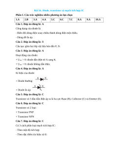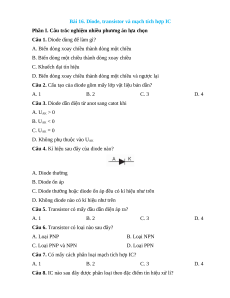 Câu 3. Diode dẫn điện từ anot sang catot khi A. UAK > 0 B. UAK < 0 C. UAK = 0