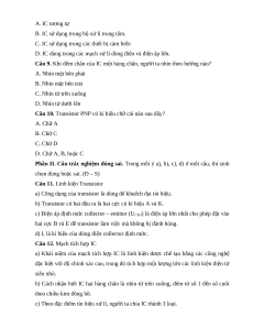 Câu 10. Transistor PNP có kí hiệu chữ cái nào sau đây? A. Chữ A B. Chữ C C. Chữ D D. Chữ A, B, hoặc C