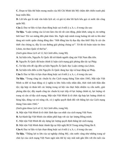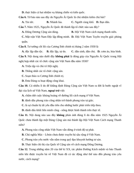 Câu 4. Nội dung nào sau đây thể hiện việc Nguyễn Ái Quốc chuẩn bị về tư tưởng, chính